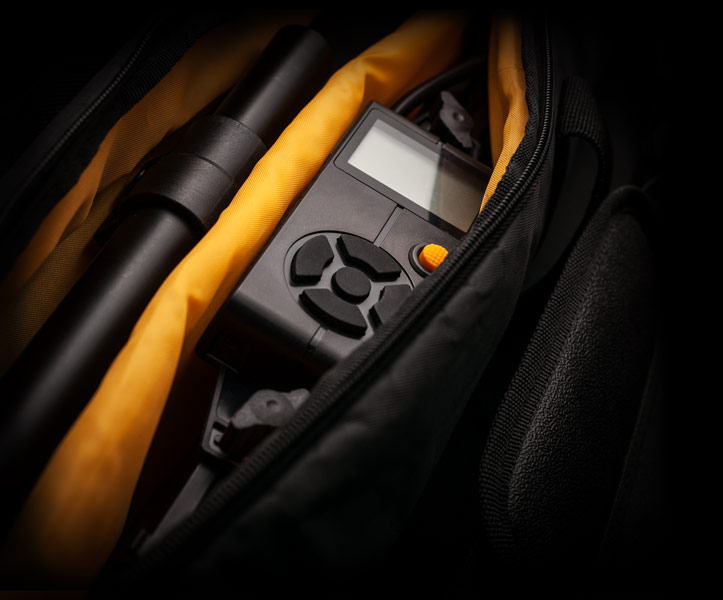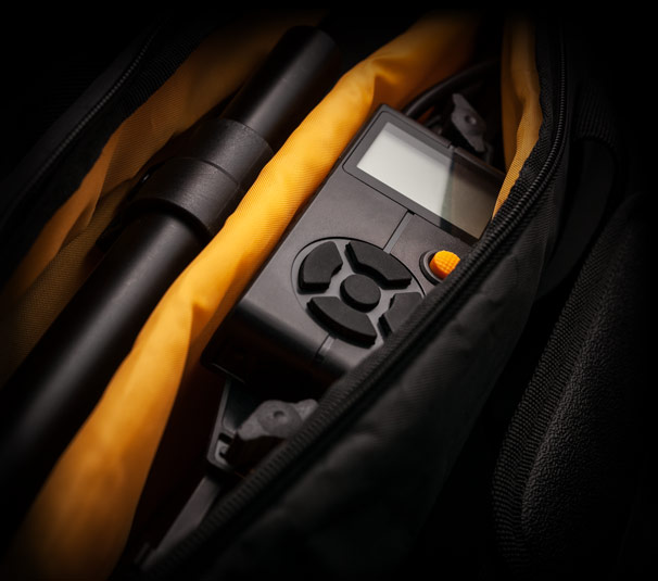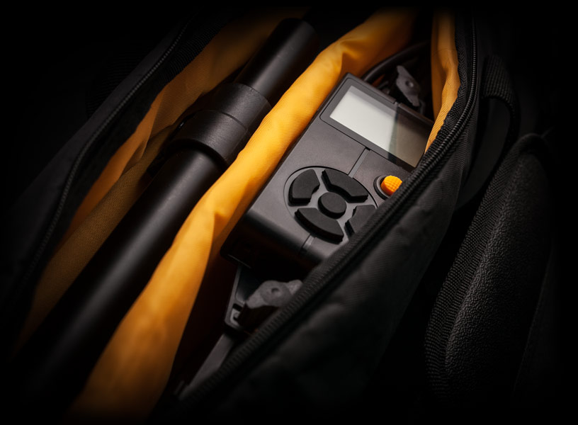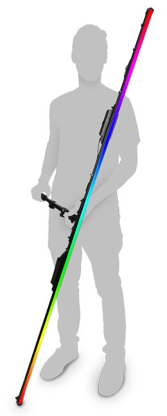 Pixelstick loves to travel. At a collapsed height of 42", all pixelstick’s parts fit snugly in the included carry bag, so it can go where you go, including carry-on luggage. Pixelstick is black, the interior of the bag is orange. Smart, right?